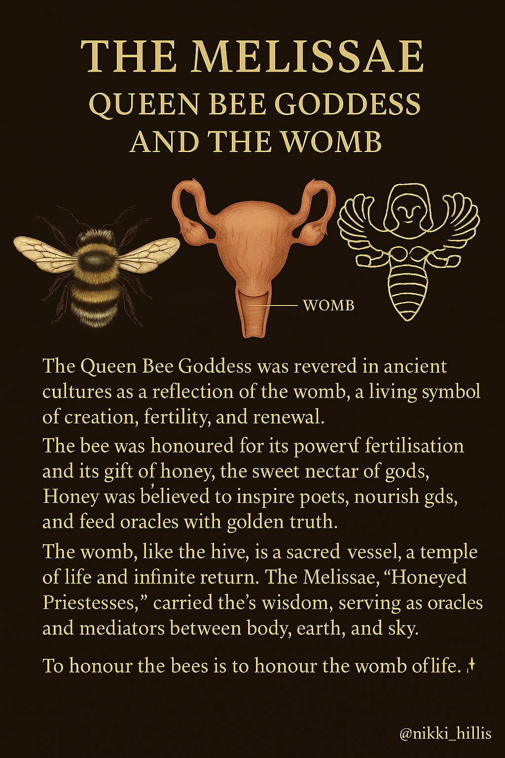 The Melissae remind us that bees are more than pollinators, they are keepers of memory, prophets of truth, and teachers of infinity. Their wings sketch eternity into the air, their honey carries blessing, and their hum is the music of harmony itself.